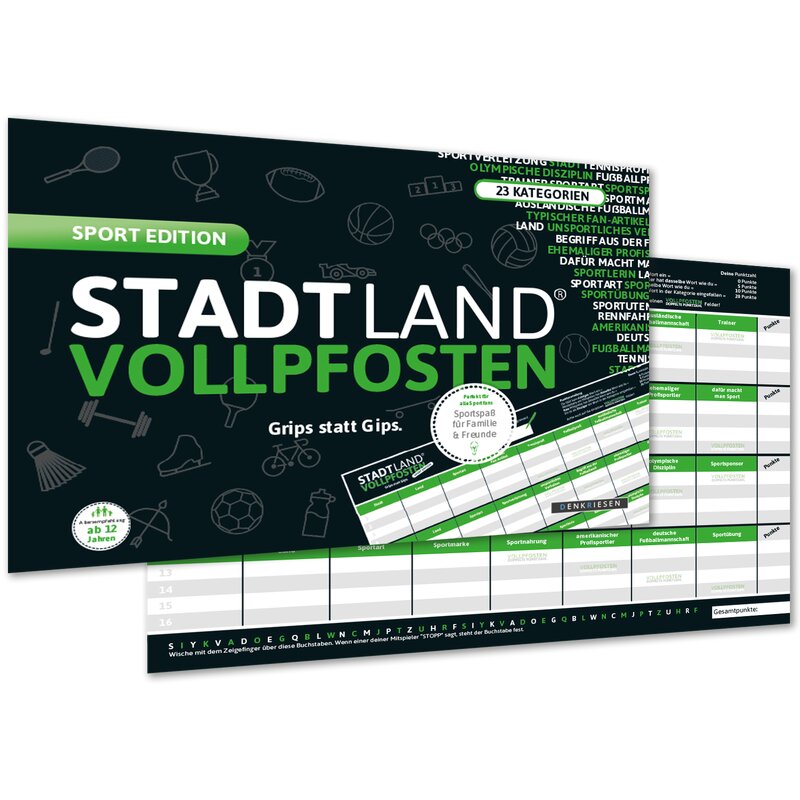 DENKRIESEN - STADT LAND VOLLPFOSTEN® - SPORT EDITION "Grips statt Gips." STADT LAND FLUSS SPIELBLOCK