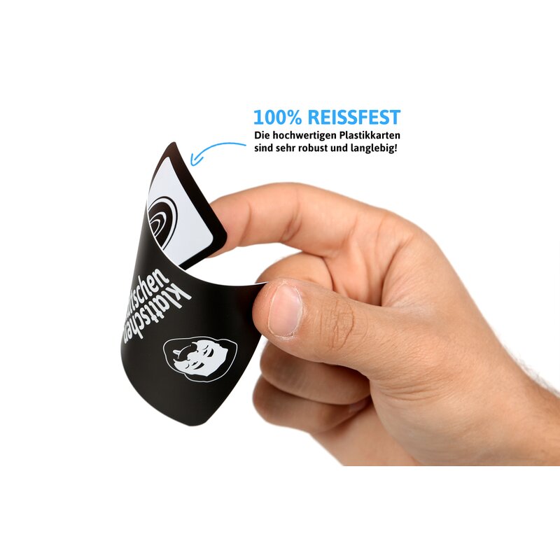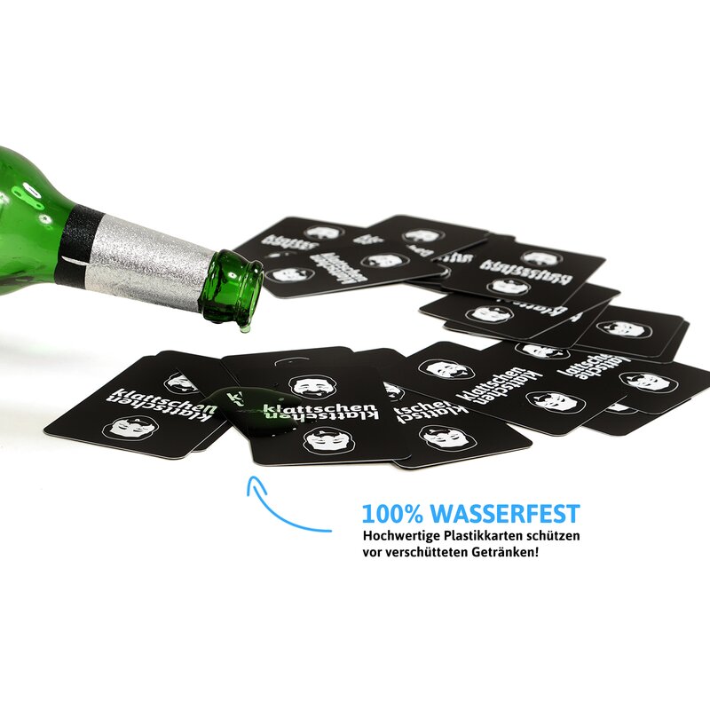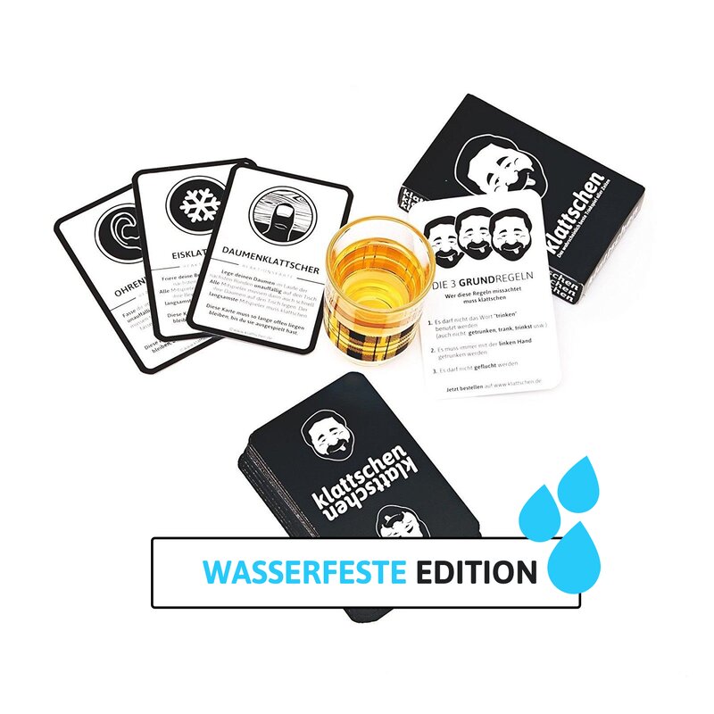 Langweilige Party in Sicht? Nicht mit diesem Spiel! Mit dem Trinkspiel klattschen® hast du das perfekte Spiel um einen feucht-fröhlichen Abend mit deinen Freunden zu erleben. Das Kartendeck besteht aus 60 Spielkarten mit 25 verschiedenen Aufgaben und Anweisungen. Wer sich nicht an die Anweisungen hält oder einen Fehler bei der Ausführung macht, muss trinken (im Spiel "klattschen" genannt).